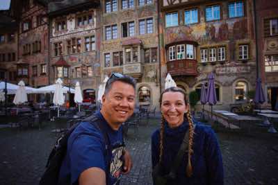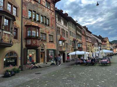 Aug 9, 2023 - 42 milesBiking day 5 - Arbon to Stein am Rhine, 42 miles, 785’ climb, biking 11a-6p (it’s our typical routine now). Turns out having a hotel next to a church is a bad idea, church bells till 11pm, and they start up at 5am; every 15 mins. We’d definitely stay in the same hotel again though. I made a fender for Jens bike from some scrap wood since it was raining again. We stopped in Konstanz, it was very crowded. We saw a man open a manhole cover in the sidewalk, and pull out a wallet with some long grippers. He threw out the contents, inspected the wallet, then put it in his pocket. Seemed super sketchy, so I took a picture, and we moved on. We stopped for the night in Stein am Rhine. We are spending the night in Hotel Schwanen (only 109 CHF per night), which is where Napoleon setup his headquarters, the building is from the year 1509. Napoleon’s room is #1, we stayed in #3. It's amazing here, one of the prettiest towns I've ever visited. Day 5 - Stein am Rhein, Switzerland pics (part 2) One of the most amazing towns I’ve ever visited. It’s like a Swiss version of Colmar, France. We made friends with the staff at the bike store, bought a very Swiss biking jersey. Had amazing tapas for dinner at Uferlos. Some of the highlights were: Heirloom tomato (red, yellow, green) salad with apricots and roasted almonds & hazelnuts. Chicken & Date kebabs. The first few pictures were part of a trivia post I posted on Facebook, what is this wand looking thing used for? Scroll to the bottom for the answer. |