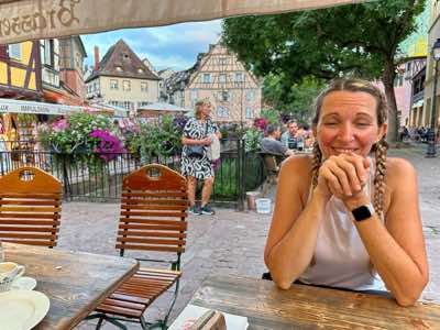 Aug 12, 2023 - 56.5 milesBiking day 8 Basel Switzerland to Colmar France. 56.5 miles, 403’ climb. Another Amazing Day!!! We biked around Basel till about 1pm. Then ended up biking all the way to Colmar, we were originally planning to do this over 2 days. We stopped at a hardware store yesterday to glue on extensions for Jen’s kickstand, it was cut a little too short which made it prone to falling over. We went back to Basel SBB train station, this station has the best food! We had amazing quiche with Brie and Broccoli. Lunch (in France now) we shared a burger, and gespatcho soup, they had marinara sauce for the fries. In Colmar we had dinner at Schwendi Bier und Wistub. We had been here before and it's amazing, i reccommend the Munster Rosti; Potato, panchetta, topped with Munster cheese, baked in a iron skillet, sorta like a raclette. We were praying for rain yesterday, and today it poured hard today for about 20 minutes. This was the first day without any major hills, we were cruising at 12-13 mph any time the pavement was smooth enough (today’s average was 9.1mph!). Temp was 80 deg, and water fountains were few and far between in France. The neck gaiter works really well (looks like I pee'd my pants). We also had cloud and tree coverage from the sun, pretty comfortable day. We arrived in Colmar super pumped up, feeling accomplished, we could have probably gone 75 miles if we had daylight. A few hotels were fully booked, we started looking around 7pm which might be a bit too late. We did find an amazing hotel, it looks like a dump on the outside, but it has an amazing pool, sauna, and our room is beautiful, only $165, and we’re right in the city center! Most other hotels were $300+. Another amazing day, and tomorrow will be even better. Planning on taking our time seeing the 3 towns around Colmar, and maybe just do 20 miles tomorrow. |