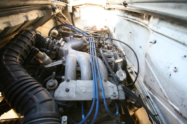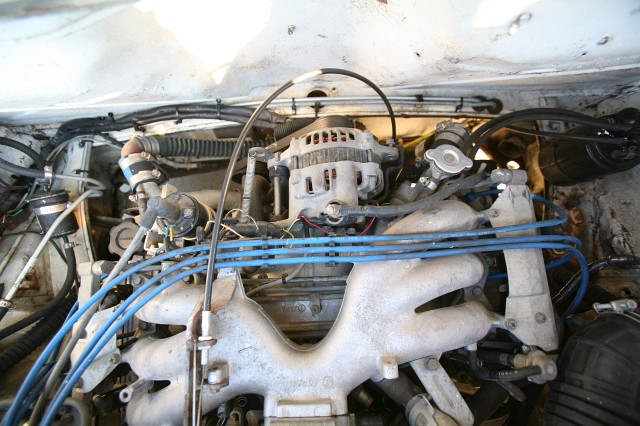 The heads on this engine are kinda cheesy. There are 4 exhaust ports for six cylinders. The fuel injection uses a hot wire flow sensor which is prefered over the flapper door style. The alternator is a 90 Amp unit.