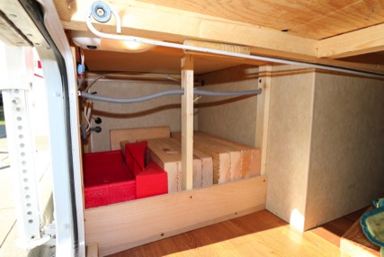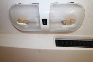 The front window lets a lot of light in, something new trailers are missing. At night the trailer is really well lit, there are 16 LED bulbs illuminating the interior, equal to about 300 watts of light, but only drawing 50 watts. After trying several LED bulbs, these are the best I've found: GRV T10 24-5050 SMD LED